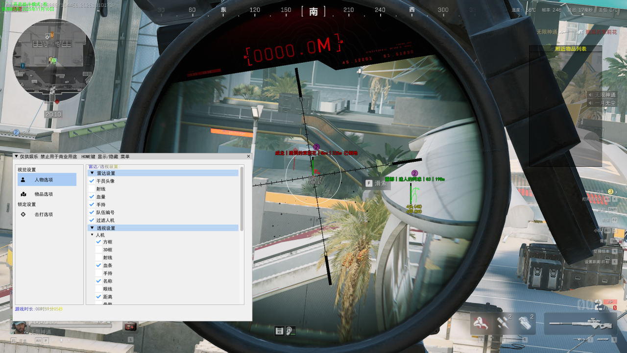 辅助功能介绍透视:清晰透视,轻松掌握敌人位置。自瞄:精准锁定目标,自瞄范围和速率可调节。方框透视:为敌人标注方框,提升辨识度。竖条血条:实时显示敌人血量状态。显示骨骼:展示敌人骨骼信息,助你更准确瞄准。显示射线:显示敌人行动路线,掌握战局。判断掩体:精确判断敌人是否在掩体后方。显示雷达:雷达功能让你